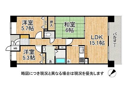 プライバシーを考慮した3LDKの間取りは、各部屋が独立しており、静かな環境を提供します。