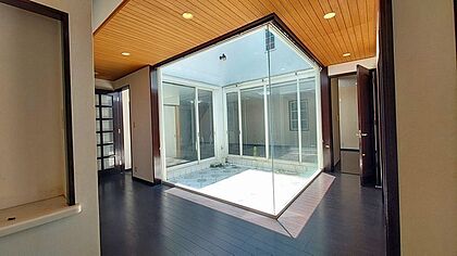 住まいの中心にある中庭は、室内に光をもたらす開放的な空間です。植物を飾るなど、多彩な用途で利用可能。【中庭】