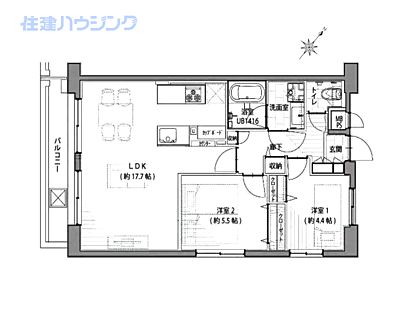 | 間取り | 2LDK | 専有面積 | 62.49m2 |