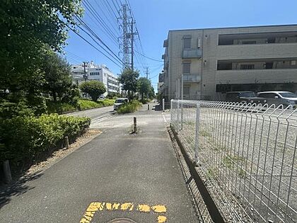 緑が豊かで開放感のある前面道路です。道路幅も十分で歩道も整備されています。周囲には樹木が多く自然を身近に感じられる環境です。日当たりも良好で明るい印象です。