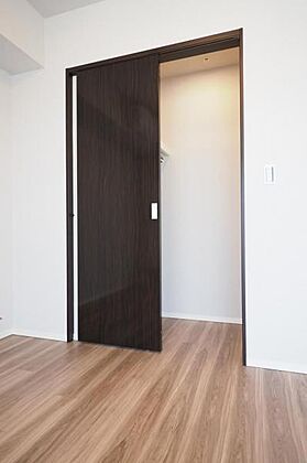 リビング横、6.6帖洋室。床にレールのない引き戸を採用。扉を解放してリビングの続き部屋としても馴染みます。