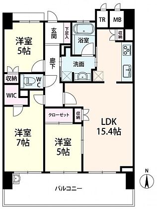 7帖洋室。 WIC付きで衣類もすっきり整理。