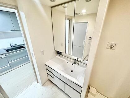 三面鏡仕様で朝の身支度もスムーズ。