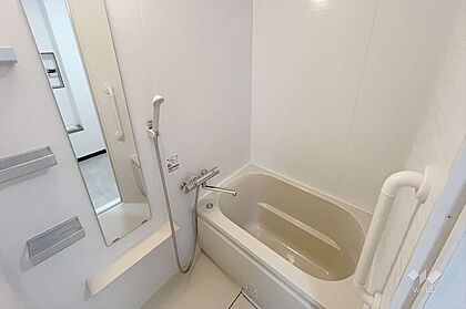 〜浴室〜1日の疲れをゆっくりほぐすことのできるバスルームです。手すりが付いておりますので、お年寄りやお子様にも安心です!シャンプー等のちょっとした小物を置くスペースもありますので、便利です。
