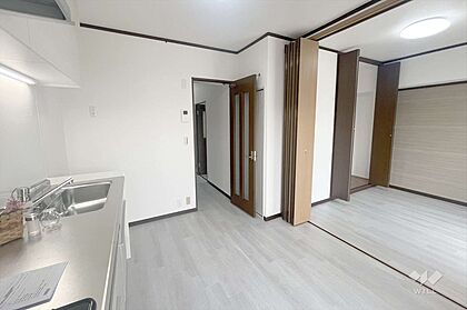 〜DK約6.5帖〜南側洋室約6帖と続き間になっており、引き戸を開放すると約12.5帖のリビングとして使うことも可能です!南向きで日当たり良好!家族で集まるにはとてもいい空間になっています。