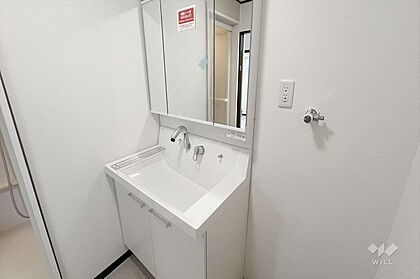 〜洗面室〜2025年6月に洗面台新調済みですので、気持ちよくお使いいただけます。三面鏡、引き出し、収納が豊富です。コンセントがあり、身支度に便利です。[2025年8月4日撮影]