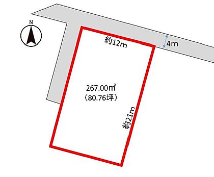 | 土地面積/坪(坪単価) | 267.00m2(登記簿)/80.91坪(5.60万円) | 代表的な接道 | 一方 公道 北 4m ※詳細は備考欄をご確認ください |