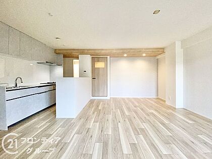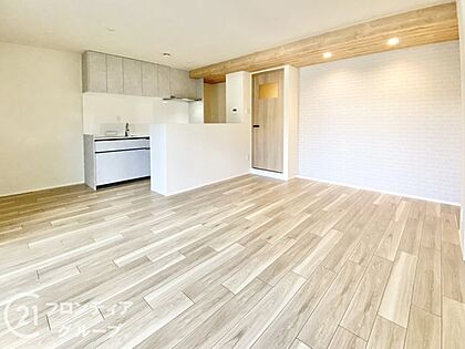 リビングは、落ち着いた色合いのフローリングが特徴です。家族の時間を大切にする理想的な空間です。