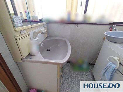 洗面化粧台付き。お出かけ前のチェックやちょっとした洗濯にも便利です。