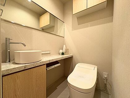 サッと手を洗える、手洗いカウンター付きのトイレスペースです。