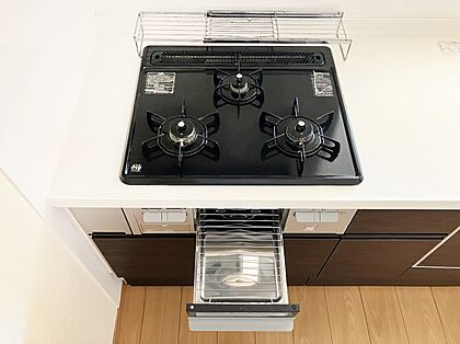 ガスコンロはSiセンサー搭載。火力調節や焦げ付き・消し忘れも防いでくれます。