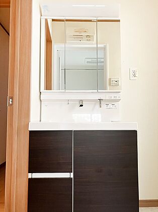 スタイリングに便利な三面鏡、ミラーキャビネットで細かい物スッキリ