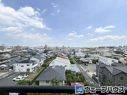スーパー、コンビニ、ドラッグストア、飲食店、公園など周辺環境が充実。(マンション南側から撮影)