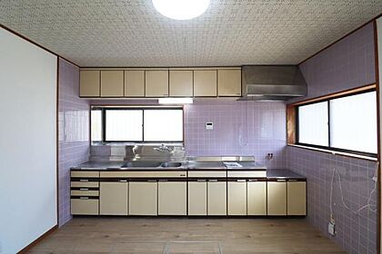 広々とした空間のキッチン♪勝手口もついています♪※DKスペースはクッションフロア貼り、クロス張りの交換のリフォーム施工済みです!