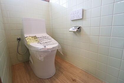 トイレの交換が完了しました。新品未使用でお引渡しします!温水洗浄便座付きのトイレで、一年を通して快適にご利用できます。