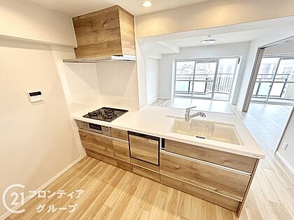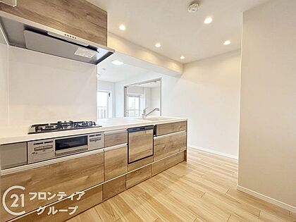 カウンターキッチンは、家族やゲストとの会話を楽しみながら料理ができる、心地よい空間です。