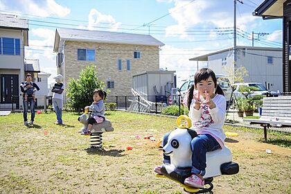 子ども達が走りまわれる広い公園があります。分譲地内には計7ヶ所に公園を完備