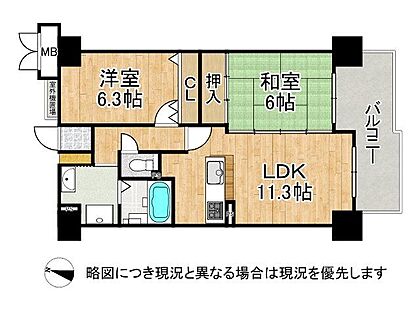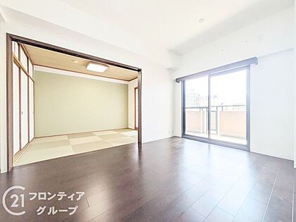 開放感あふれる広々としたバルコニーは、テーブルやチェアを置いてくつろぎ空間としても活用可能。洗濯物もしっかり干せて、眺望や陽当たりも良好。ゆったりとした時間を過ごせる、ゆとりの魅力的なスペースです。