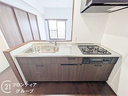 効率的に設計されたキッチンは作業スペースが広く、収納も豊富で使いやすさは◎です。シンプルでありながら機能的なデザインが、毎日の料理を快適にサポートします。掃除もしやすく、清潔感のある空間です。