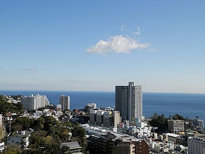 【スカイガーデン】レジデンス屋上から熱海を見下ろすパノラマビューをご覧ください。