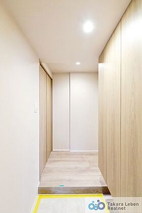 ナチュラルカラーの室内廊下、明るく開放感のある空間を演出します。