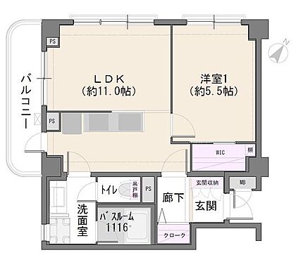 約11.0帖のLDK。プライベートタイムの満足感を大きく高められる空間です。