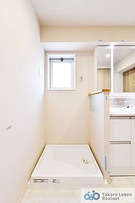洗濯機置き場。小窓がついており明るく風通しの良い空間に。