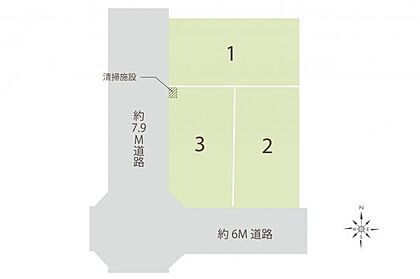 【接道】 一方 ( 公道 西 7.9m ) ごみ置場持分:約1.33m2×各1/3 景観法 |