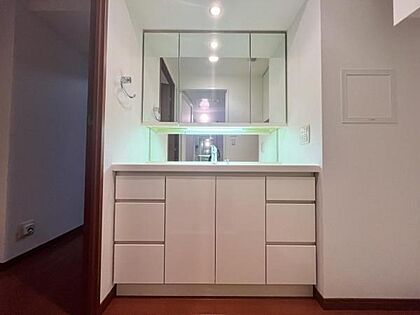 〜洗面化粧台〜 3面鏡のシャワーヘッドの使い勝手が良い洗面化粧台です。