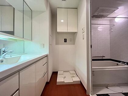 〜脱衣所〜 ランドリースペースの上部に吊戸棚が設置された脱衣所スペースです。