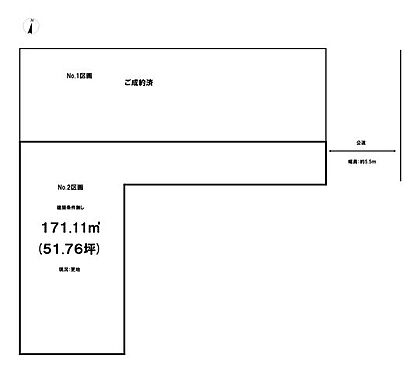 | 土地面積/坪(坪単価) | 171.11m2(実測)/51.85坪(57.50万円) | 代表的な接道 | 公道 東 5.5m ※詳細は備考欄をご確認ください |