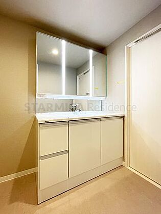 洗面台の下は収納となっており、アイデア収納で豊富に収納可能です