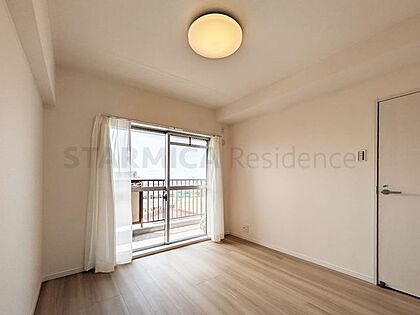 バルコニーに面した、明るい陽射しが射し込む5.5帖の洋室