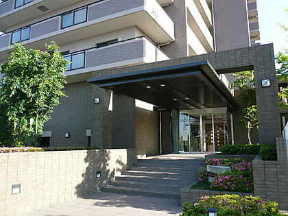 マンションエントランス。オートロック付きのためお子様や単身の方にも安心。