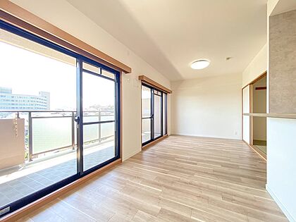 令和7年8月フルリフォーム完了。南東向きのリビングダイニングはバルコニーに広く面しており、明るい自然光が入り込みます。フルリフォーム済みのため気持ちよくお住まいいただけます。即日ご見学が可能です。