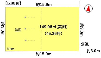 | 土地面積/坪(坪単価) | 149.96m2(実測)/45.44坪(48.00万円) | 代表的な接道 | 一方 公道 東 6m ※詳細は備考欄をご確認ください |