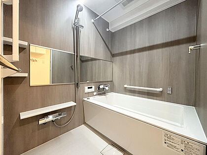 浴室乾燥機付き浴槽になります。設備は浴室乾燥機、追い炊き機能、縦型の鏡、浴槽手摺、物干竿1本など設置してあります。