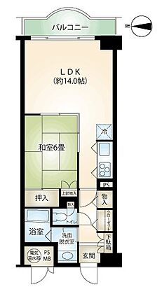 約14.0帖のLDKです。寛いだり、お食事などを楽しんで頂ける空間となります。