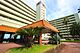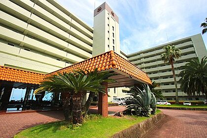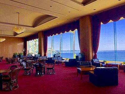 大空間に赤い絨毯と相模湾のコントラストが特徴的なロビーになります。