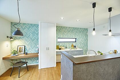 ダイニングに併設のスタディコーナーは子供たちの宿題スペース。食事の用意をしながら見守り学習が可能です。