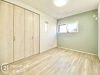 落ち着いた色合いとシンプルな内装が魅力の寝室。ゆとりある空間で家具の配置もしやすく、快適な眠りとリラックスタイムを演出します。採光や通風も良好で、一日の疲れを癒す理想のプライベート空間です。