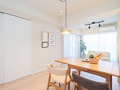 居心地の良いリビングダイニングはシンプルで洗練された佇まいを感じさせるお部屋です。都市生活のやすらぎを深める、快適な暮らしが叶う住まいです。