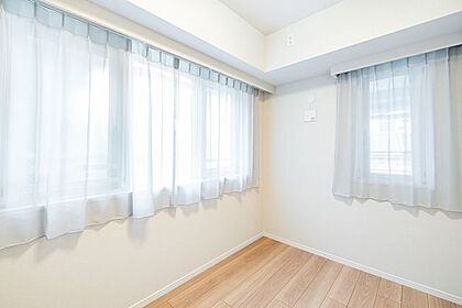 二面採光で開放的な洋室2です。凹凸が少なく、シンプルな内装で仕上げてますので、住まう方の趣味や感性で飾っていただけます。
