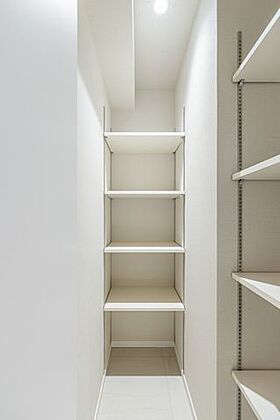 玄関からアクセスできるシューズインクローゼットです。便利な可動棚付きでシューズはもちろん、アウトドアグッズや雨具なども収納可能です。