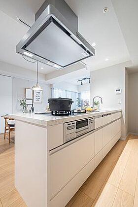 Panasonic製システムキッチンを新規設置しました。室内の色合いに調和した、デザイン性の高いキッチンです。収納も作業スペースも広いので、効率よくお料理が楽しめます。