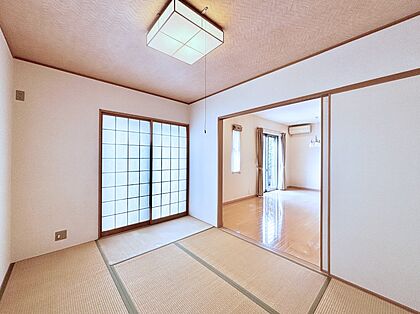リビングと隣り合っている和室。ほっと一息できる和の空間も忘れずに。