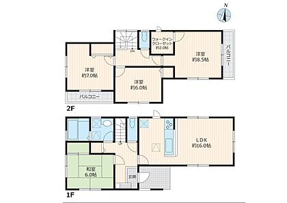 ウォークインクローゼット付きで生活空間を広く利用できます。