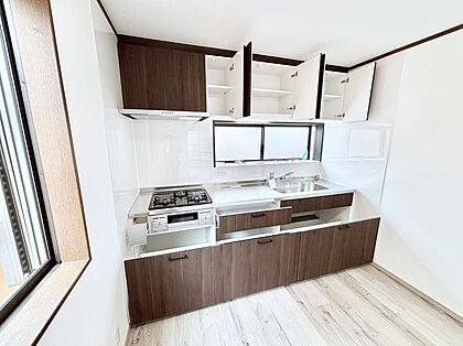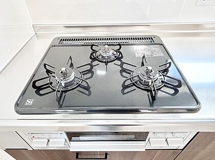 ガスコンロはSiセンサー搭載。火力調節や焦げ付き・消し忘れも防いでくれます。