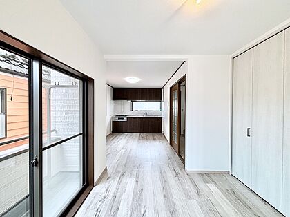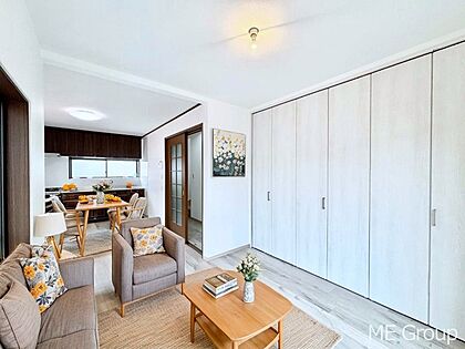 明るい陽光が注ぎ、寛ぎの雰囲気に満たされるリビング・ダイニング。