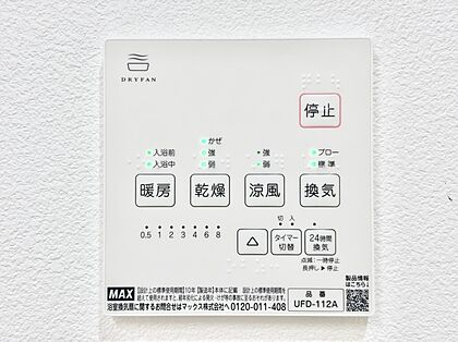 浴室涼風暖房換気乾燥機付きなので、お天気が悪い日のお洗濯も安心!